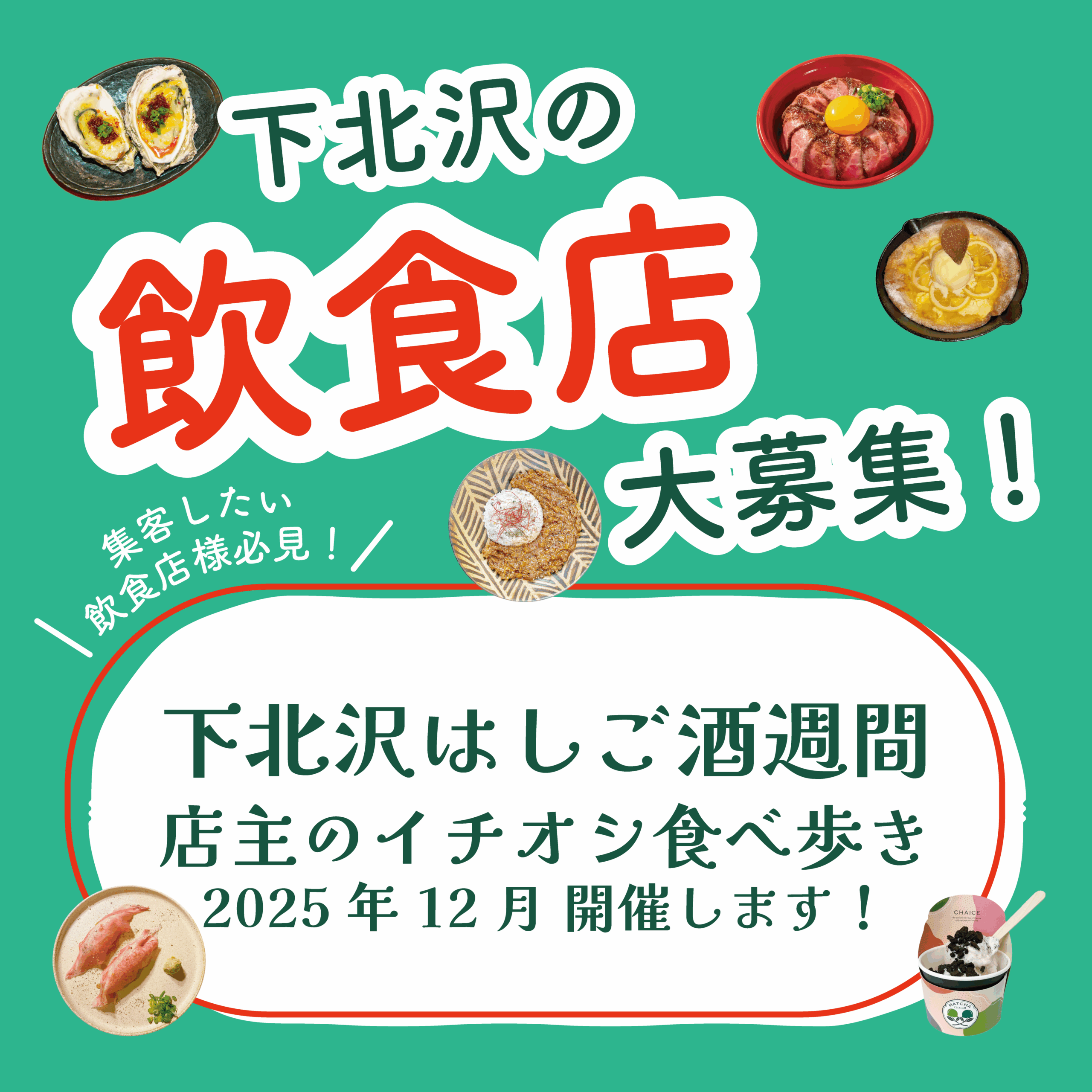 店舗にとっては、自店を知っていただく絶好の機会です。また、次回来店につながるきっかけづくりになります。下北沢の飲食店の皆さま、イベントに参加し一緒に盛り上げましょう!