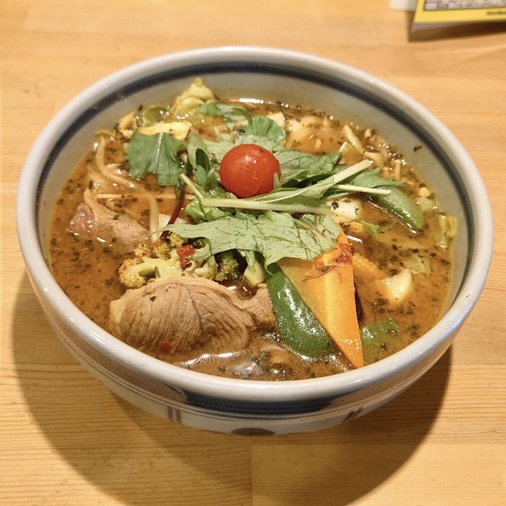 札幌発のスープカレー専門店です。大きめの野菜やチキンが入った具沢山のスープカレーは、辛さやライス量を細かく調整できます。通し営業なので昼休みがずれても安心で、テイクアウトにも対応しているためオフィスに持ち帰ることも可能です。