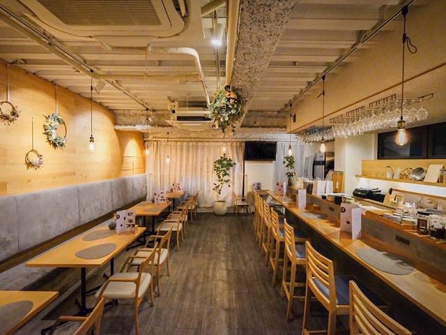 こちらも(tefu)から行きやすい、西口徒歩30秒のカフェバーです。名物ピンチョスと特製キーマカレーが看板メニュー。店内はカフェのような雰囲気で、夜はバルとして営業しています。軽く済ませたいランチ利用や仕事終わりの一杯のバルの利用まで幅広く利用できます。