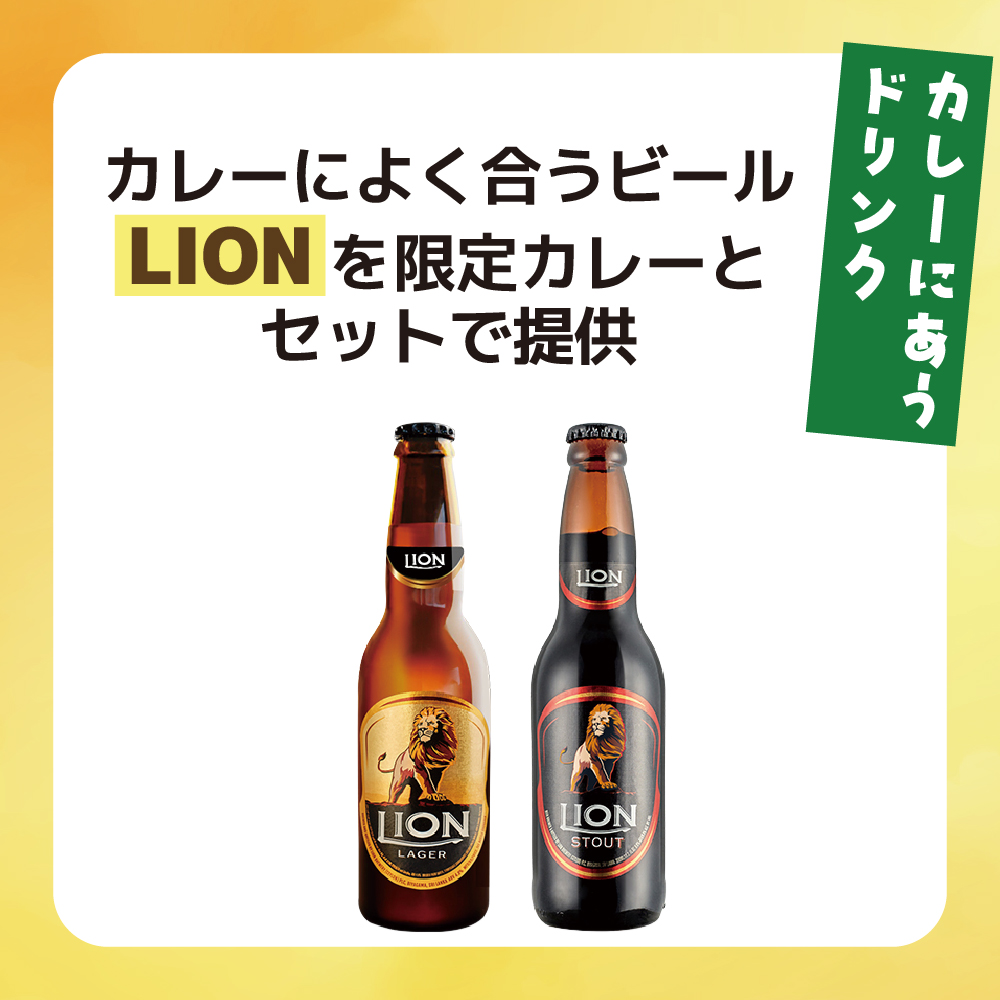 カレーによく合うビール「LION」を限定カレーとセットで提供してくれる、お酒好きにもってこいのコラボ🍺