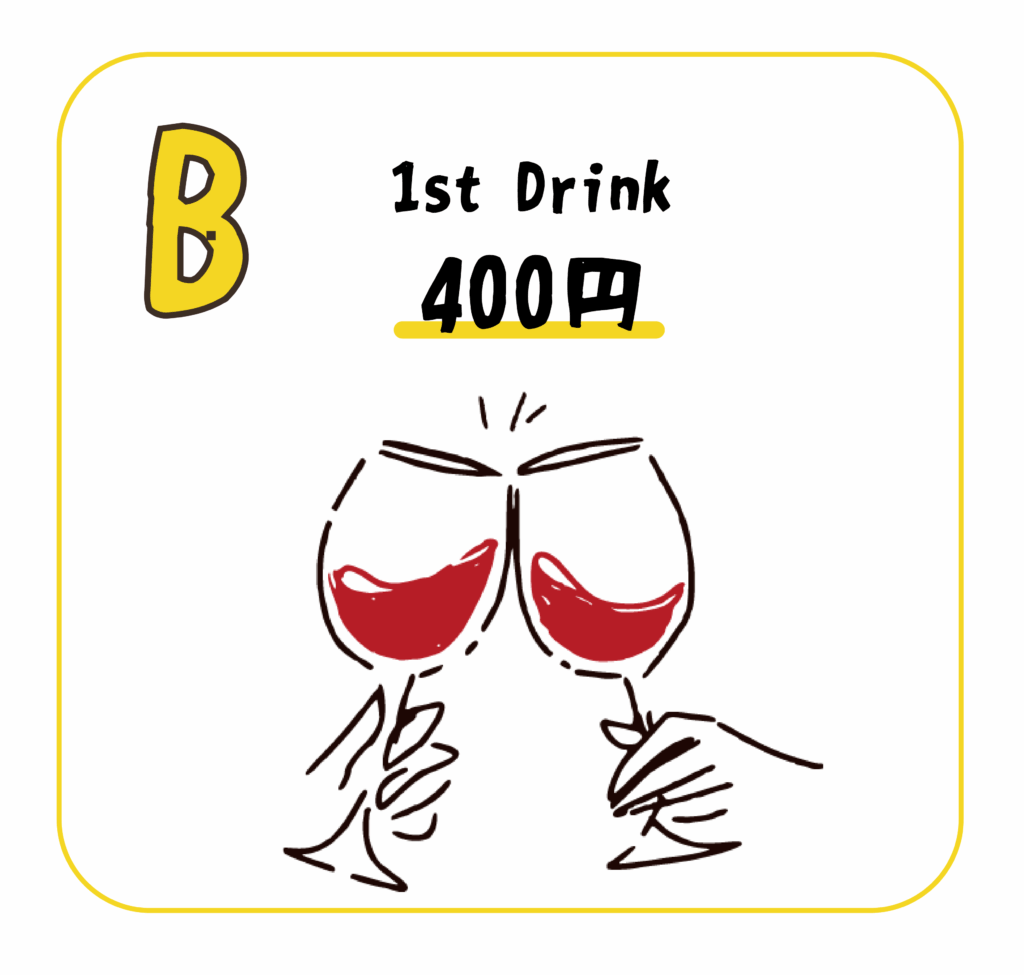 1stドリンク:400円(税込)のアルコール・ソフトドリンク両方を準備してください。