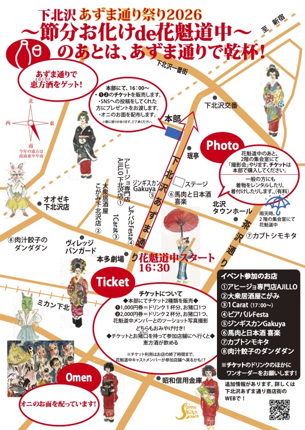 下北沢あずま通り商店街で節分お化けde花魁道中が開催されます!