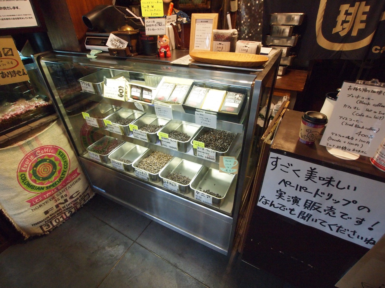開業当初はカフェとして営業していましたが、下北沢に「高品質の珈琲豆だけ」を扱う店が無いので珈琲豆専門店となりました。