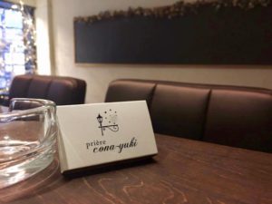 店名はフランス語「祈り」という意味のprière に、「粉雪」 cona-yuki を 音声表記しました。 プリエール コナユキ と呼びます。