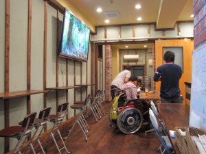 店内は広く、椅子やテーブルの移動も自由で大きいテレビがあるので、ワークショップやイベントに使用できます。