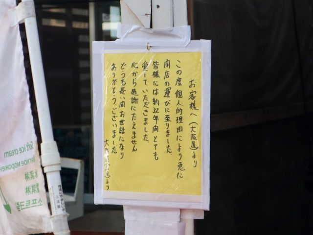 2016年1月に元のお店を閉店され、同年12月に再びSTUDIO B.USにて再開をされていた大阪屋が、急遽閉店されるという驚きのニュースが舞い込んできました。