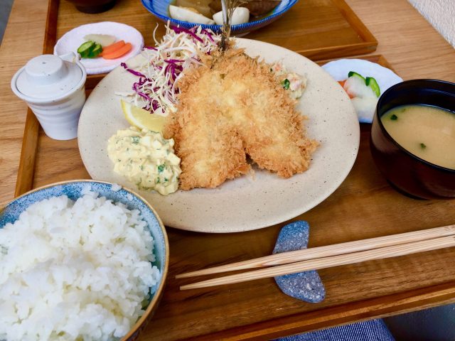 悩みに悩んで、アジフライ定食と手羽元と大根ごぼう定食を注文。ふわっふわのとても大きなアジフライはタルタルの相性が抜群です!