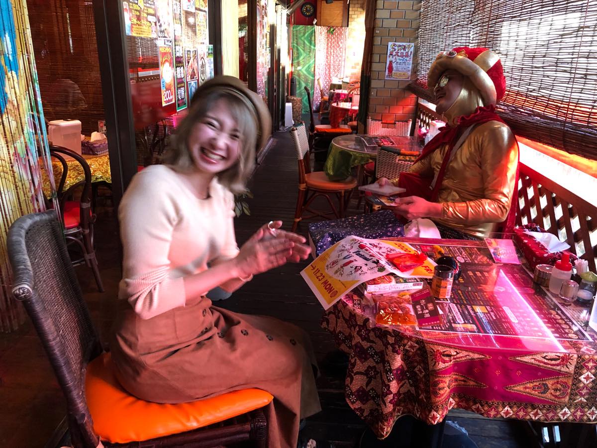 実は彼女、下北沢カレーフェスティバル(以下:カレーフェス)に参加するのは今年で3年目。スタンプラリーをコンプリートするともらえる限定TシャツをGetするほどカレー愛に溢れている常連さんなのです!うれしいことに今年も毎日のようにカレーフェスに足を運んでいただき限定TシャツをGetしたツワモノ。カレーフェス期間中はマジスパは行けなかったとのことで本日は念願の来店となりました。