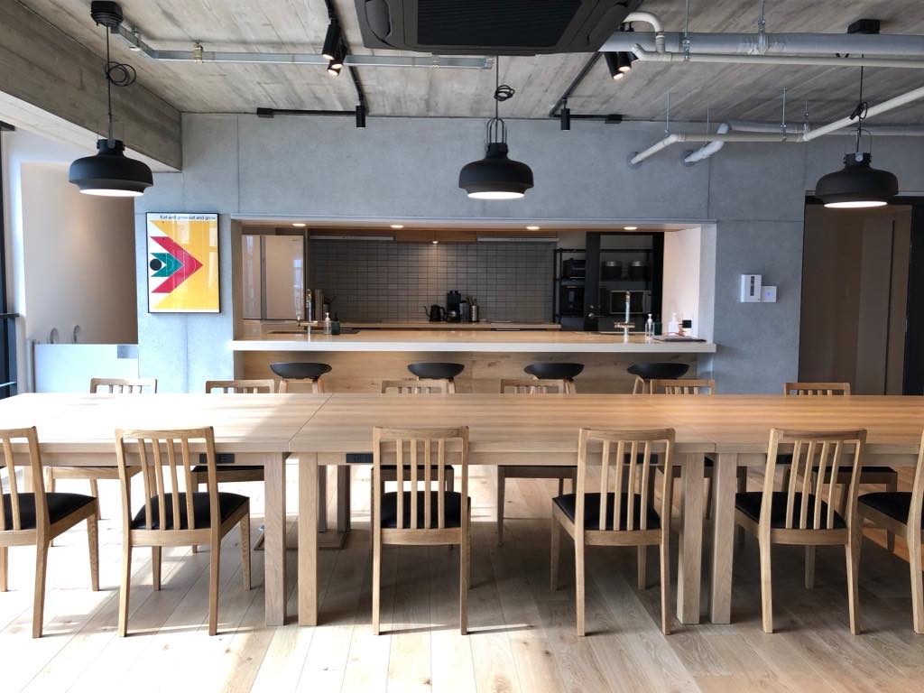 実は2階奥の一角、SHIMOKITA COLLEGEの学びの部分を運営しているHLAB社のオフィスが存在しており、居住者だけでなくHLAB社員も日常的に居住者同士の歓談やワークショップに参加し新たな風を吹き込む仕組み作りがされているようです。