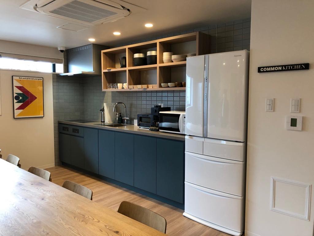 2階共有キッチンとリビングスペース。リビング奥に見えるスペースがオフィスとなっています