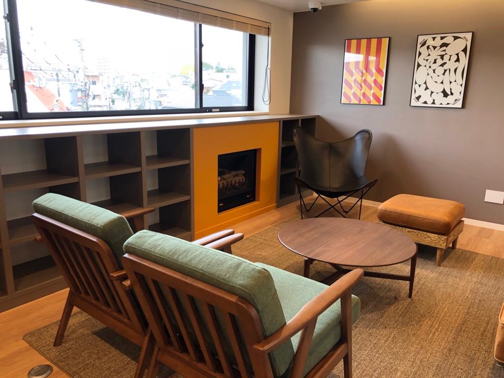 最上階である5階にはキッチンスペースと家庭菜園もできる大きなルーフテラス、4階にはランドリーの待合室と一体化した暖炉のあるリビングスペース、3階には読書や自習が行えるライブラリーと、各階ごとに人が集まれるスペースが必ず設けられており、ここでも『意図せず人が集まる空間作り』が工夫されています。