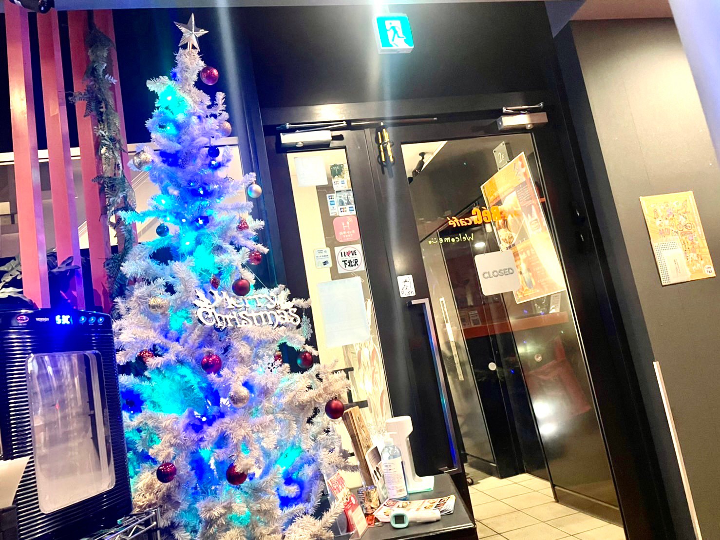 お、入口に「シモキタコイン」のステッカーが!今日のお支払いはシモキタコインに決まりだな。