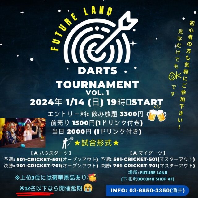 1月14日(日)|ダーツ大会🎯【FUTURE LAND TOKYO】