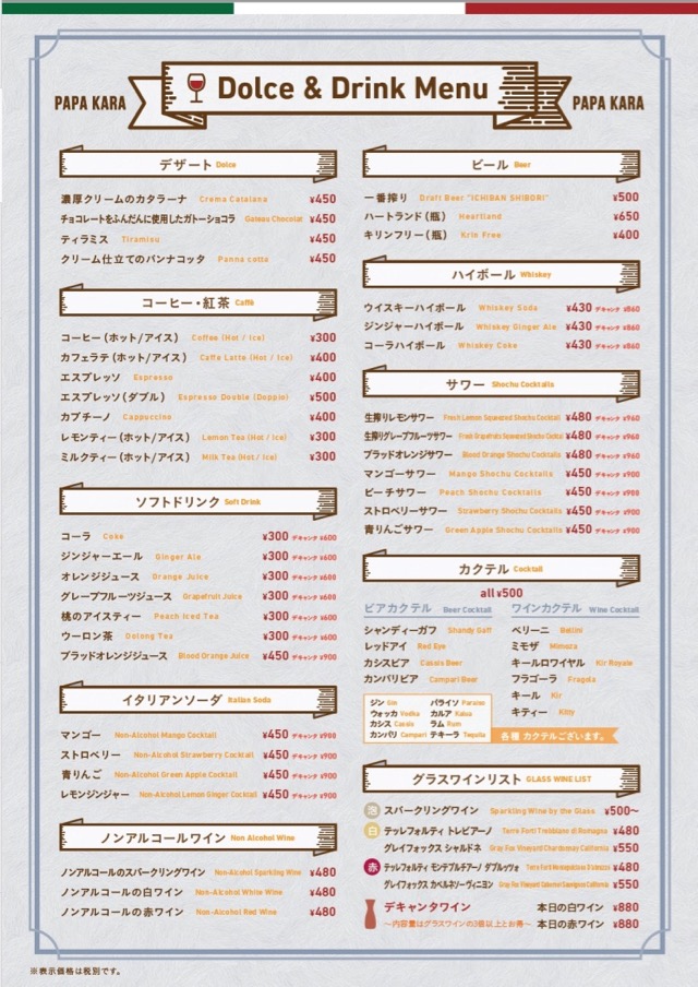 南口より徒歩3分、小道を入ってすぐのビル2階にある隠れ家的な「PAPA KARA」での一時をいかがでしょうか?