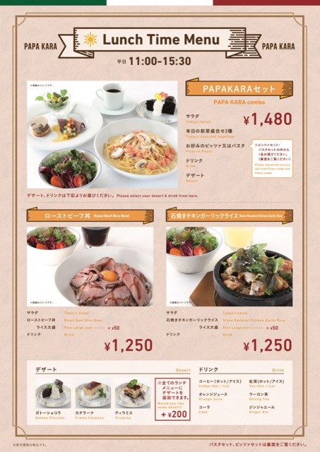 土日祝限定ランチ! 11:00~15:30