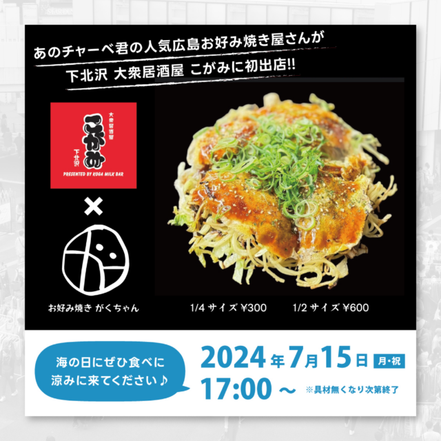 松田”CHABE”岳二氏の人気お好み焼き屋「お好み焼 がくちゃん」が出店することが決定しました!