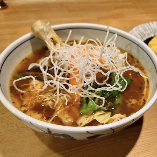 チキン・ポーク角煮・ビーフ・ベジタブル・ハンバーグの5種類から選べるスープカレーは辛さが5段階から選べて、トッピングも追加できます。