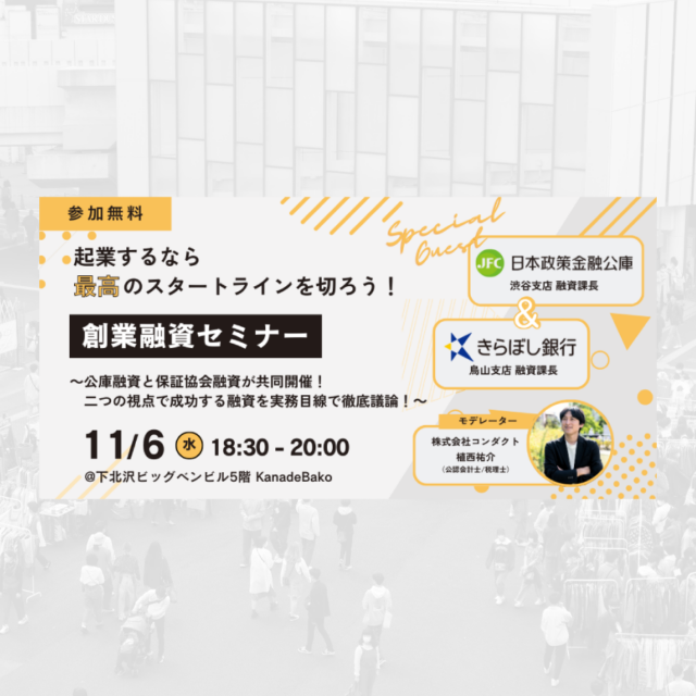 「創業融資を絶対に成功させたい」「創業融資についてイチから知りたい」というスタートアップCxO、スモールビジネス経営者、管理部門/コーポレート系の方々に向けて日本政策金融公庫・きらぼし銀行の融資課長をお招きし、実務目線で成功する融資を徹底議論します!