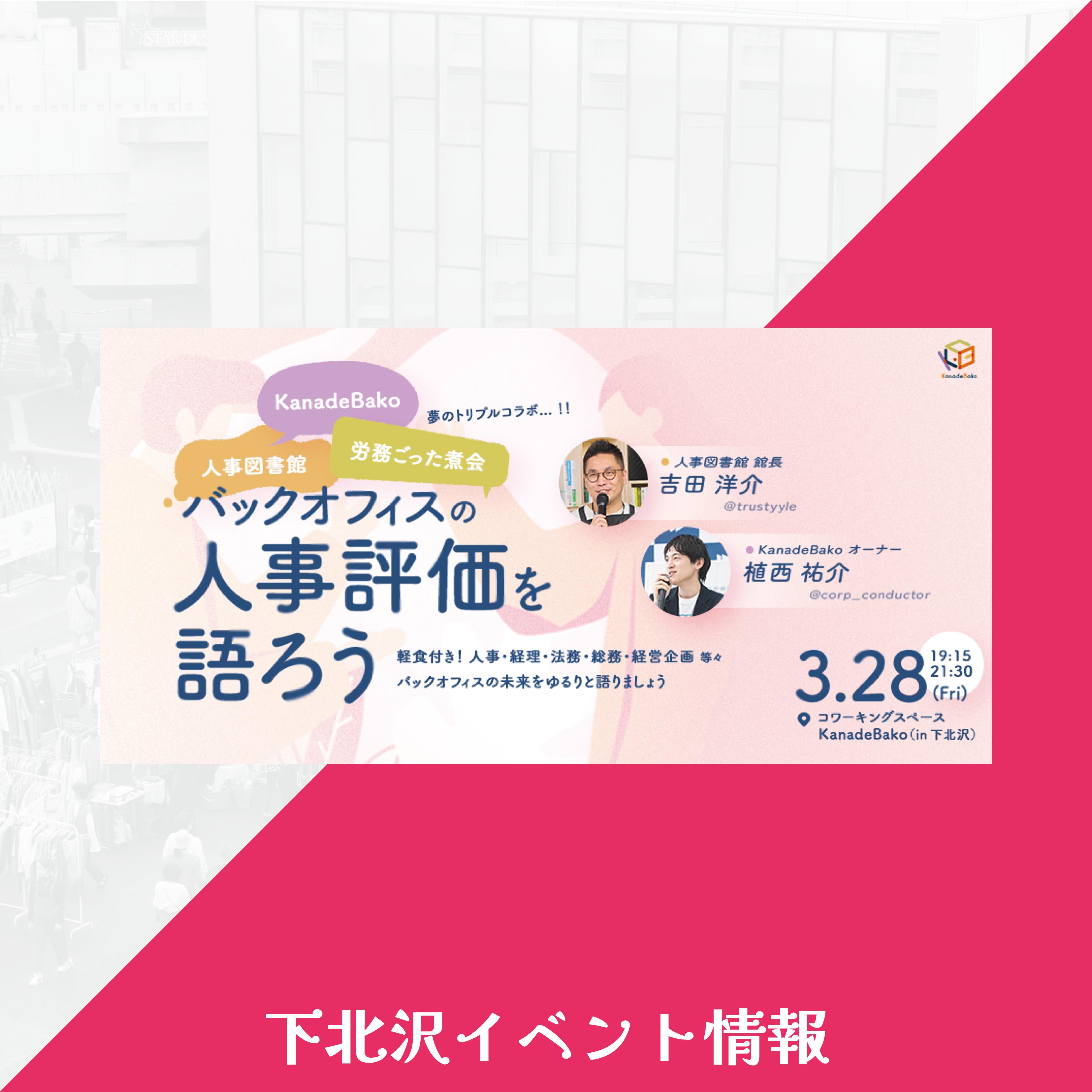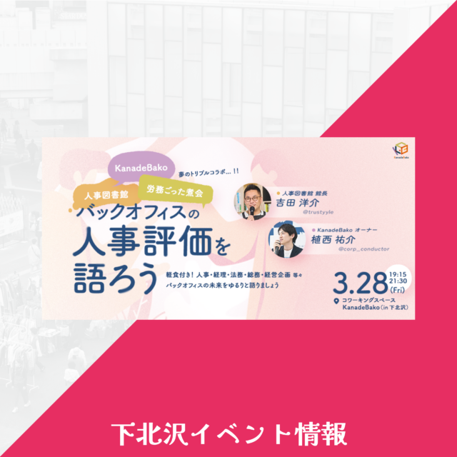 下北沢のコワーキングスペースKanadebakoで人事図書館×労務ごった煮会×KanadeBakoのコラボイベントセミナーが開催されます!
