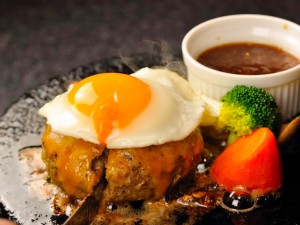 全国から厳選した国産黒毛和牛100%のハンバーグ。焼き方も鉄板などは使わず、富士山から採掘した溶岩石を使用、他では味わえない、ふわとろハンバーグ。肉汁もヨダレも溢れ出す大人のハンバーグです。