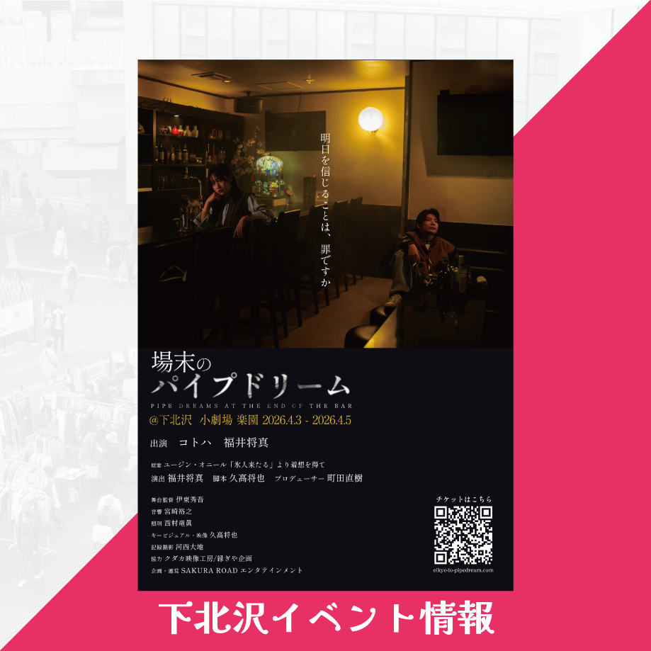 下北沢の小劇場楽園で二人芝居『場末のパイプドリーム』が上映されます!