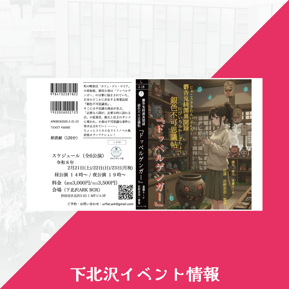 2/21(土)~23(月・祝)|朗読劇「麝香鬼奇譚異聞録銀色(にびいろ)不可思議帖『ドッペルゲンガー』」【ARK BOX】