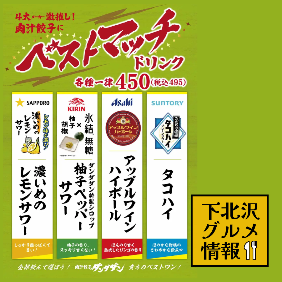 【下北沢グルメ情報】「肉汁餃子に合うドリンク」ベストマッチキャンペーン【肉汁餃子ダンダダン】